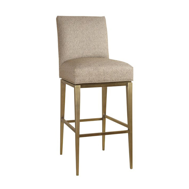 The Richfield stool has the same features as the Richfield chair having a simple, tailored upholstered seat that attaches to the metal base by the memory swivel. The base recesses underneath the seat part giving the illusion the seat is floating over the base. The metal base is well scaled having long tapered legs and delicate stretchers that are finished in a beautiful, plated Antique Bronze finish. Also available in Antique Silver and Oil Rubbed Bronze.
