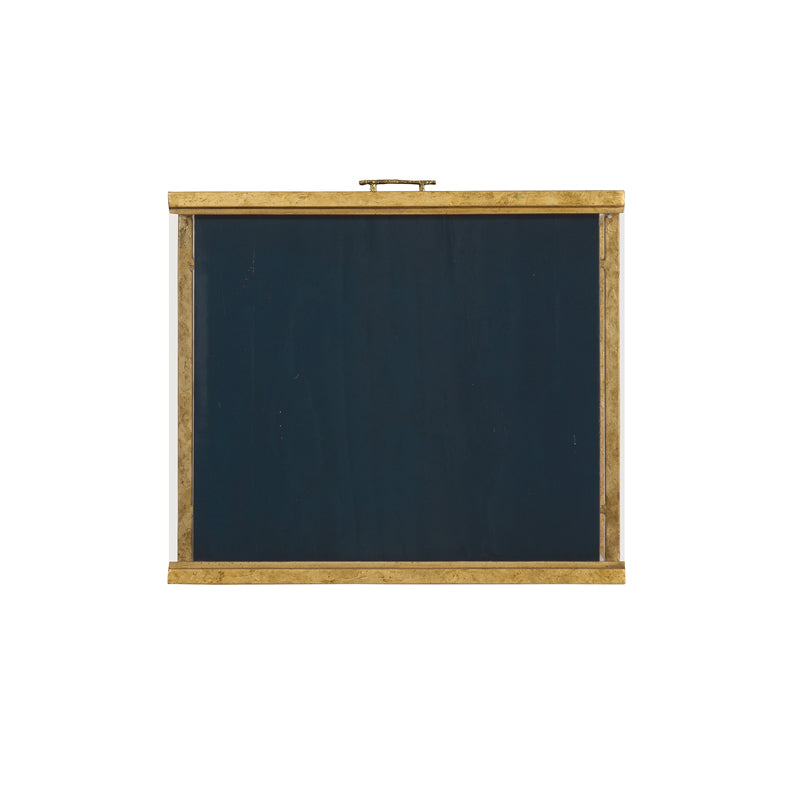 Antique Burnished Gold Leaf San Juan Lamp Table with Hand Laid Azure Blue Accents, Glass Top