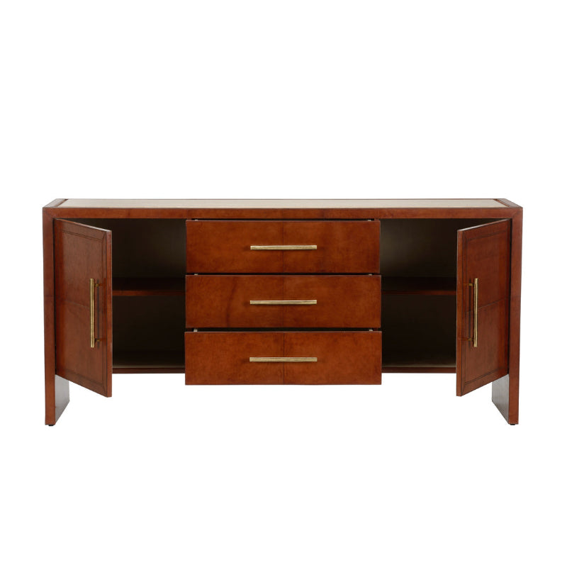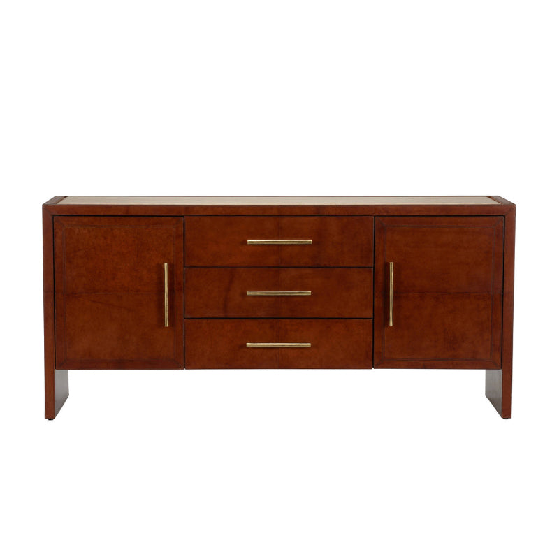 The smooth leather finish adds a touch of warmth and texture, while the sturdy natural travertine top provides a striking contrast with its natural stone beauty. The single drawer and shelf space is designed for ample storage, making this nightstand as functional as it is stylish.