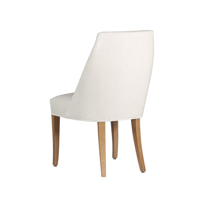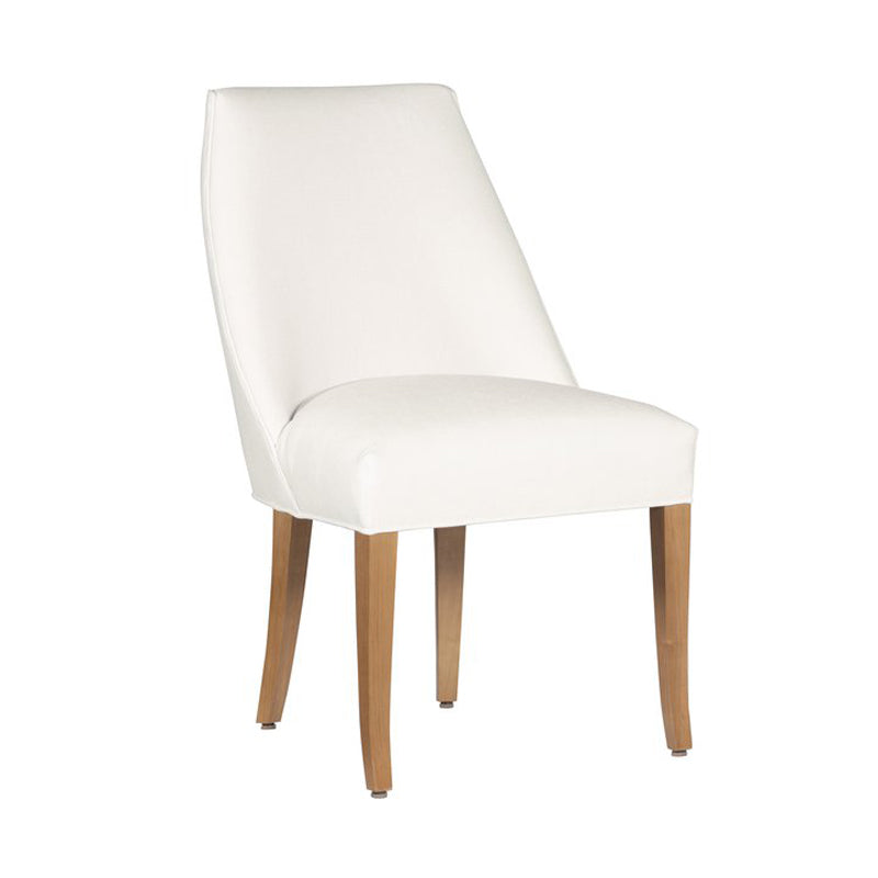 The Saratoga chair is a uniquely styled modern sling back chair. The chair exhibits a graceful, sweeping profile line that starts at the bottom of the seat and moves out and up to the top back rail of the chair. This line continues and follows the curved shape of the chair’s top rail a front view of the chair reveals the beautiful convergence of the back from the bottom to the top giving the chair timeless modern design esthetic. A comfortable, tightly upholstered seat, delicate saber-shaped front leg posts and graceful sweeping back leg posts complete this new chair.