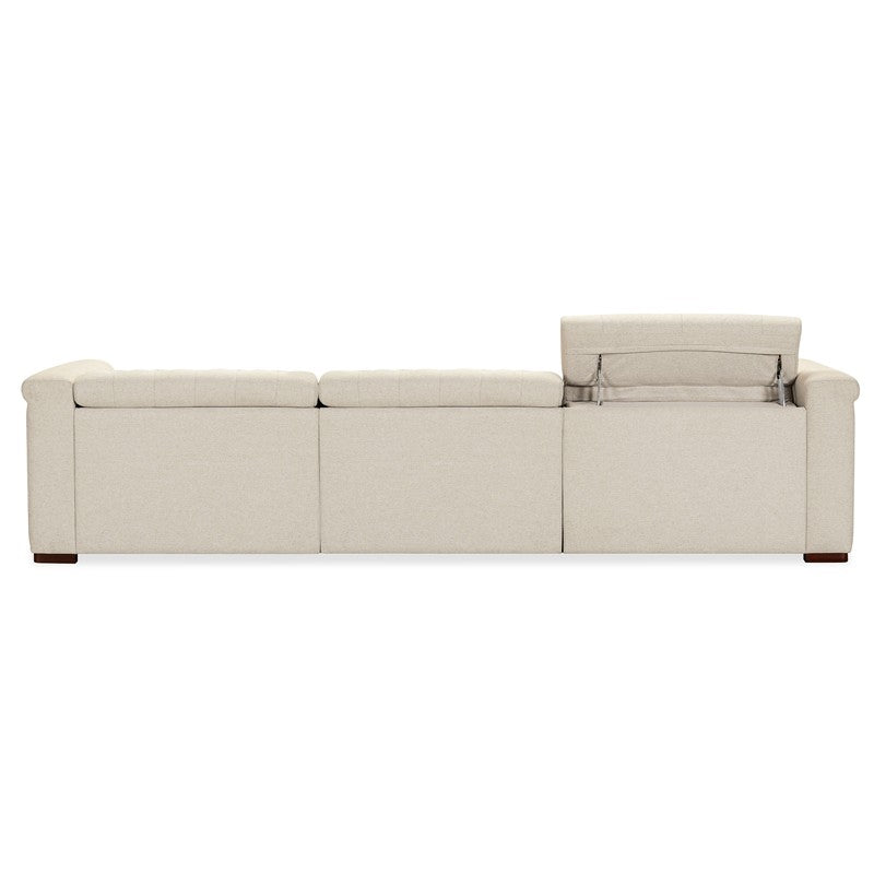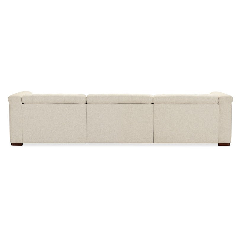 The Savion Deux 3 Seat Sofa offers two power recliners and three power headrests for personalized comfort, all wrapped in the soft Aries Beach performance fabric. This durable fabric, combined with dark wood accents and classic chesterfield tufting, gives the sofa a sophisticated yet versatile appearance. Copper-toned nail trim adds a touch of elegance, while the discreet power recline mechanism ensures luxurious seating for any living room.