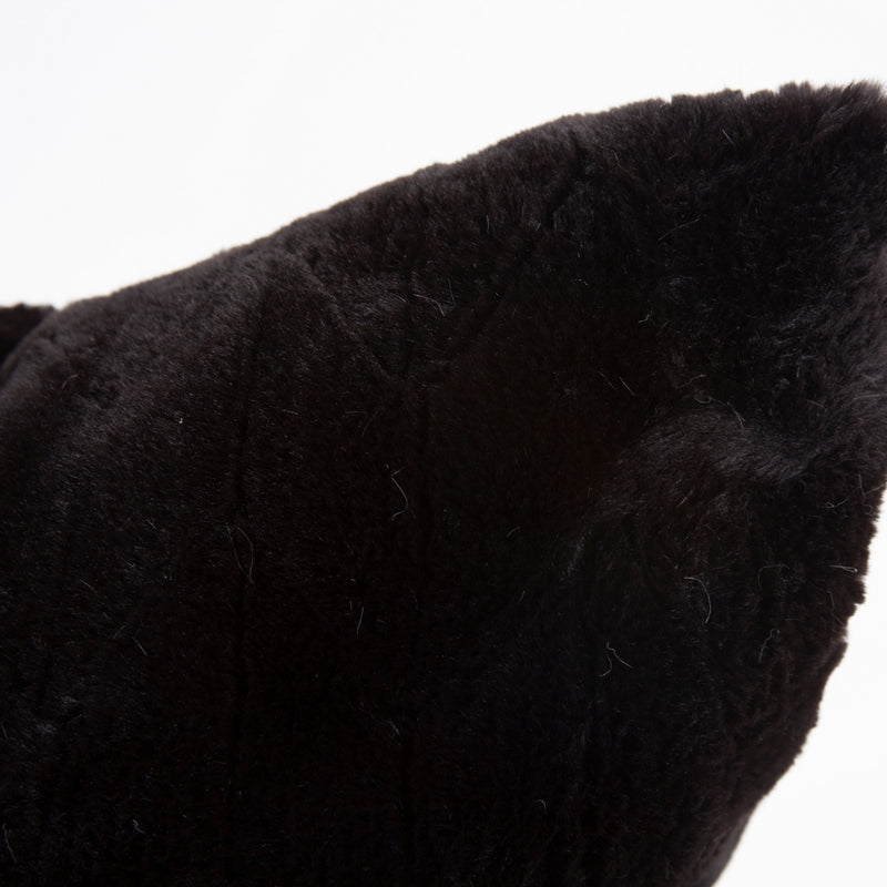Change up color themes or add pop to a simple sofa or bedding display by piling up the pillows in a multitude of colors, textures and patterns. This Angora Pillow features a luxuriously soft ebony black faux fur fabric. Includes a lush down pillow fill insert. A hidden zipper closure allows the cover to remove for easy care. Also available with a polyester pillow insert. Also available in a 24 and kidney size. Pillow