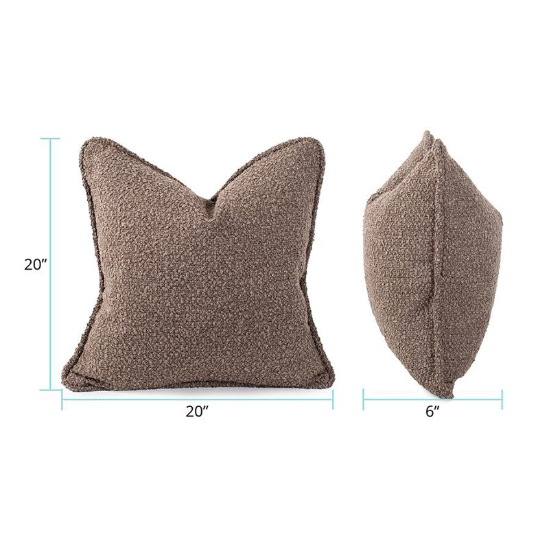 The highlight of the Barbet pillow collection is its casual soft knobby weave in natural earthy color tones such as the Chocolate in deep taupe. Designed with matching cording around the outer edge, these pillows are perfectly at home on a contemporary sofa or nestled in a casual lounge chair. The texture, depth, softness, and colors of each of these pillows will make them a staple in todays casual urban lifestyle settings. Includes a lush down filled pillow insert and invisible zipper closure. Also available in a 24 size, 20 Gusseted pillow and Pouf collection. Pillow