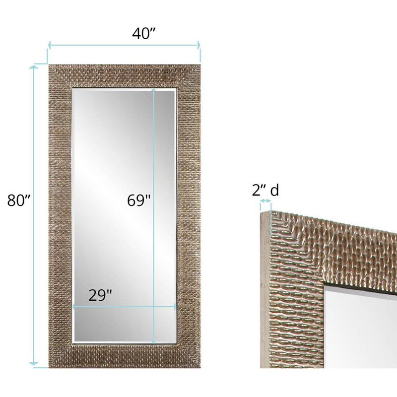 The Bergman Mirror features a round frame characterized by a textured ribbed design. It is then finished in a brushed champagne silver leaf, accented by black highlights. This oversized piece will instantly command any room with its sleek and sophisticated style. It is a perfect focal point for an entryway, bathroom, bedroom or any room in your home. D-rings are affixed to the back of the mirror so it is ready to hang right out of the box! For a leaning style, we include security hardware to lean against the wall safely. Mirror