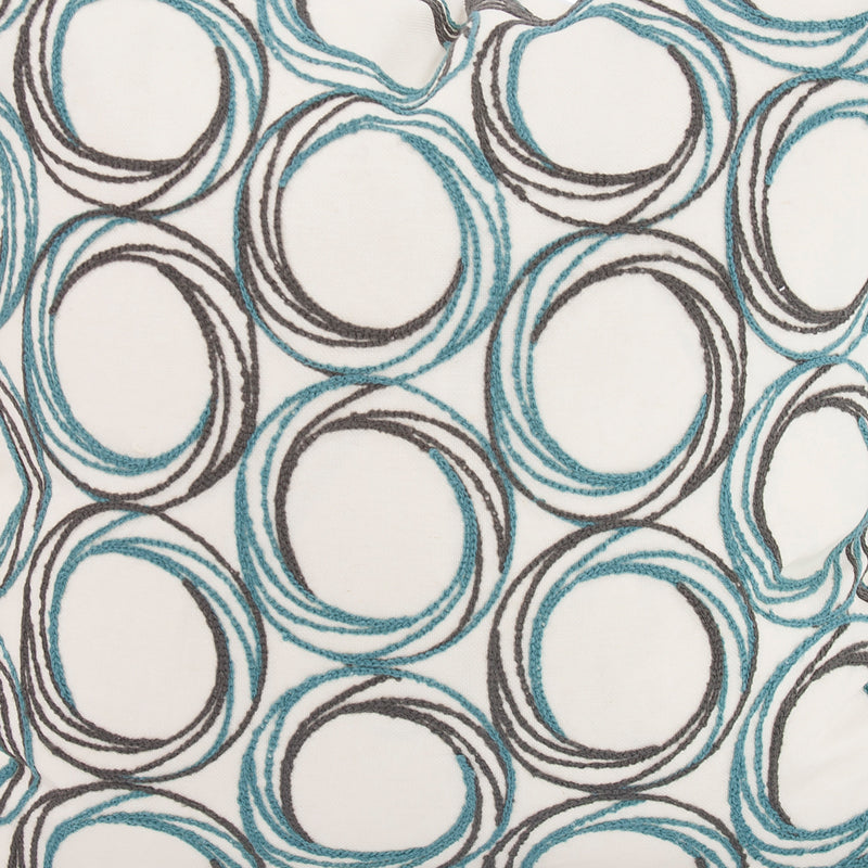 Change up color themes or add pop to a simple sofa or bedding display by piling up the pillows in a multitude of colors, textures and patterns. This Demo Pillow features a natural base fabric adorned with a circular design embroidered in blue and neutral toned threads. Includes a lush down pillow fill insert. A hidden zipper closure allows the cover to remove for easy care. Also available with a polyester pillow insert. Also available in a 20 and kidney size.``Pillow
