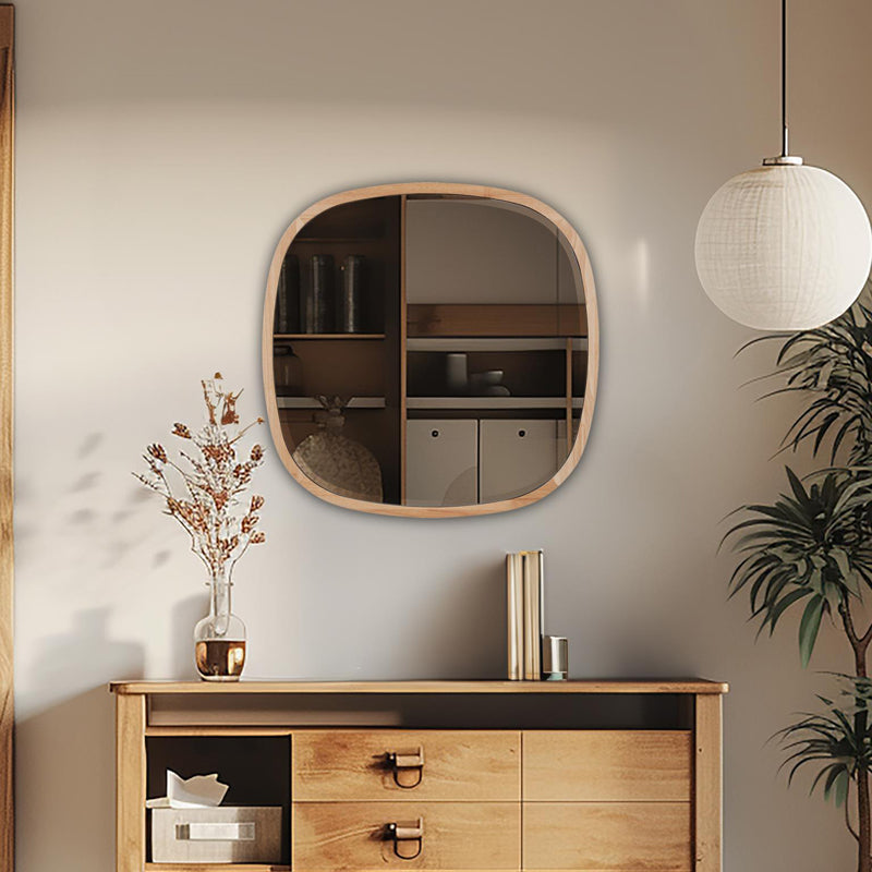 The sleek lines and softly rounded edges give the Johann square beveled mirror a sophisticated European styling. The light oak frame fits perfectly in some of today's hottest lifestyle trends. Whether grouped together or used individually, these mirrors will offer several solutions for creating a unique room space that reflects your personal style. Mirror