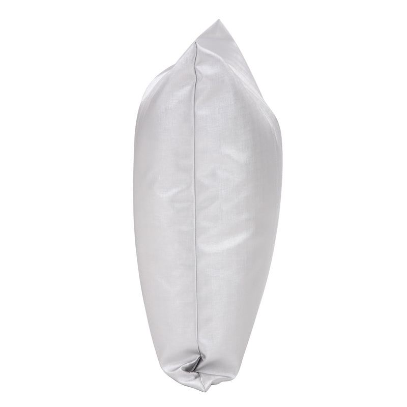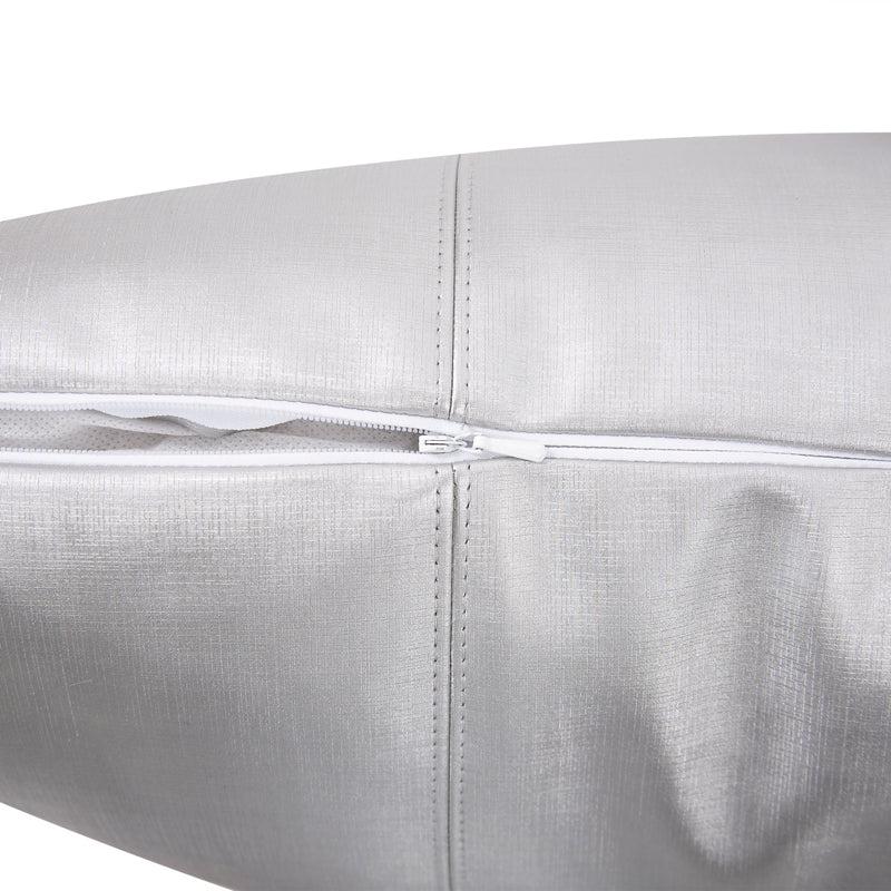 Change up color themes or add pop to a simple sofa or bedding display by piling up the pillows in a multitude of colors, textures and patterns. This Luxe Pillow features a metallic mercury silver color, textured leather-like grain and a paneled design to give the look of true leather. Includes lush polyester pillow fill insert. Also available in a 20 and kidney size.``Pillow