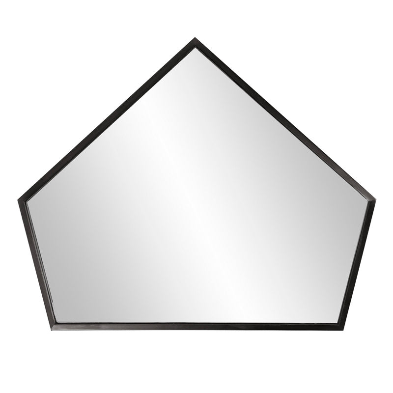 Our Quintin Mirror was designed with creative flexibility in mind. It features a 5 sided stainless steel frame in a brushed black finish. Use as an individual accent mirror or arrange multiples on a wall for a dramatic focal point. D rings are affixed to the back of the frame so that the mirror can be hung right out of the box with the point up or point down. Additional finishes available. Mirror