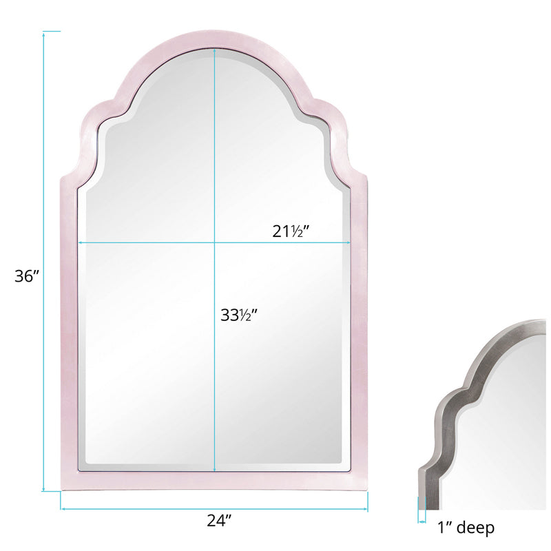 The Sultan Mirror is a gorgeous piece. The wood frame is shaped like a fancy arch way. It is then finished in our glossy lilac purple lacquer. It is a perfect focal point for an entryway, bathroom, bedroom or any room in your home. D-rings are affixed to the back of the mirror so it is ready to hang right out of the box! The mirror on this piece is beveled adding to its style and beauty. The Sultan Mirror is part of our custom paint program and is available in one of fourteen vivid colors. It is proudly painted in the USA. Mirror