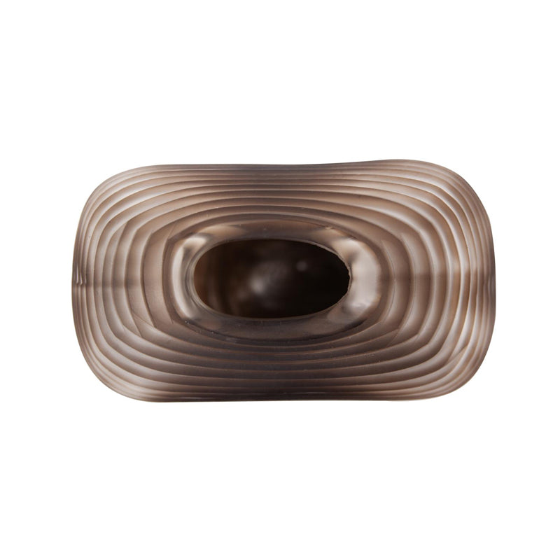 The cut patterns and the use of frosted and translucent techniques gives the Bruni tall vase it's uniqueness. The deep chocolate brown only increases the richness and details of the texture. Hand crafted these pieces of art glass can easily stand alone or be the showcase for a single fresh blossom. Vase