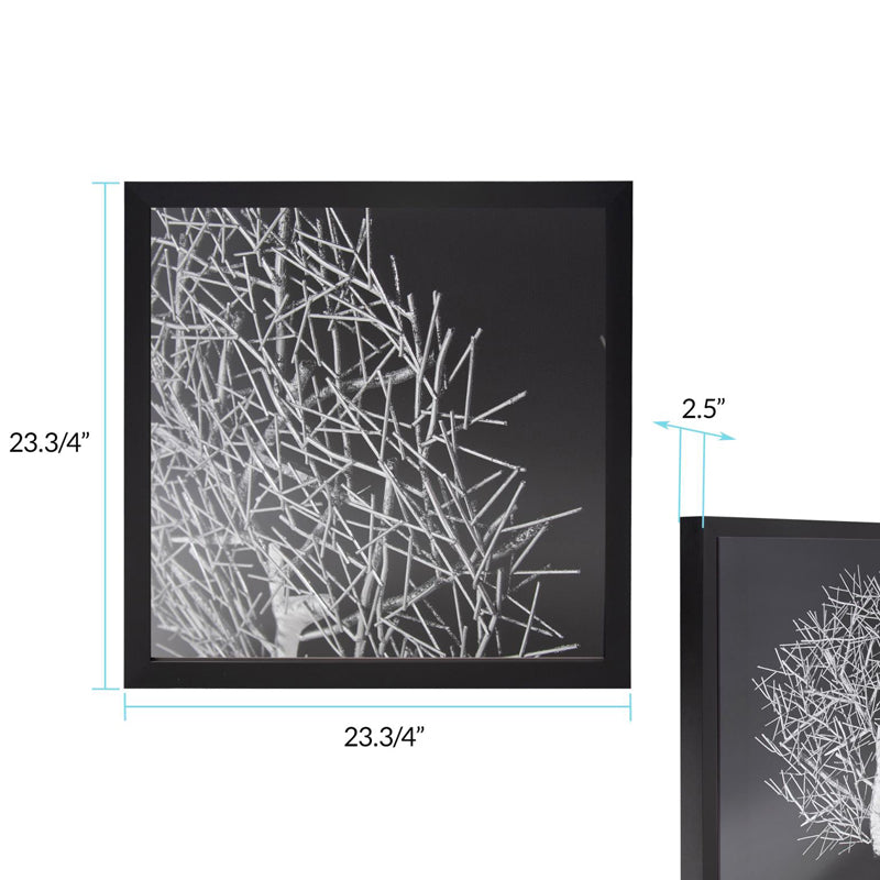 Spanish for tree, our Arbol Wall Art captures the beauty of a tree in this abstract rendition. A white tree is set on a black background framed in a black shadowbox styled frame. The art is protected by a glass case. D-rings are affixed to the back of the mirror so it is ready to hang right out of the box! Wall Art
